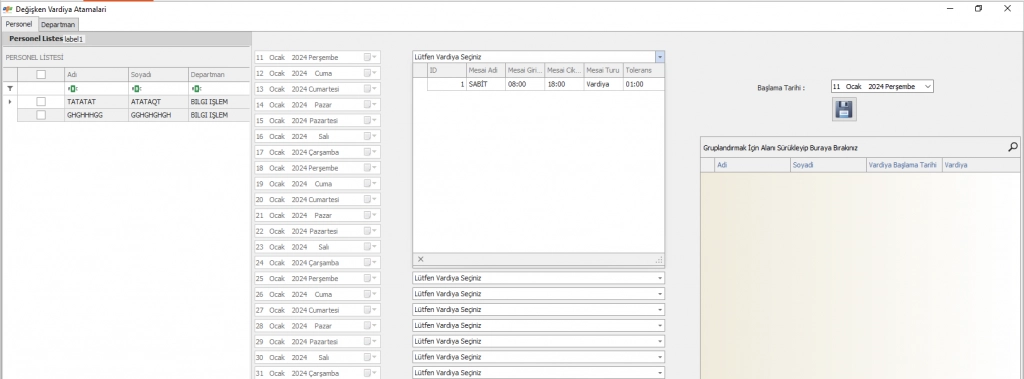 Personel Takip Programında vardiya ataması yapılırken eğer personelin her gün sürekli vardiyası değişiyorsa değişken vardiya ataması yapılır.