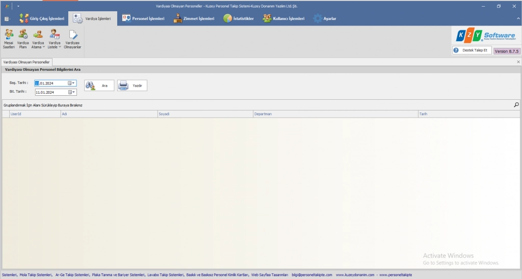 Vardiya sistemi, vardiyası olmayanlar butonuna tıkladığınızda güncel vardiya atanmamış personelleri listeler.